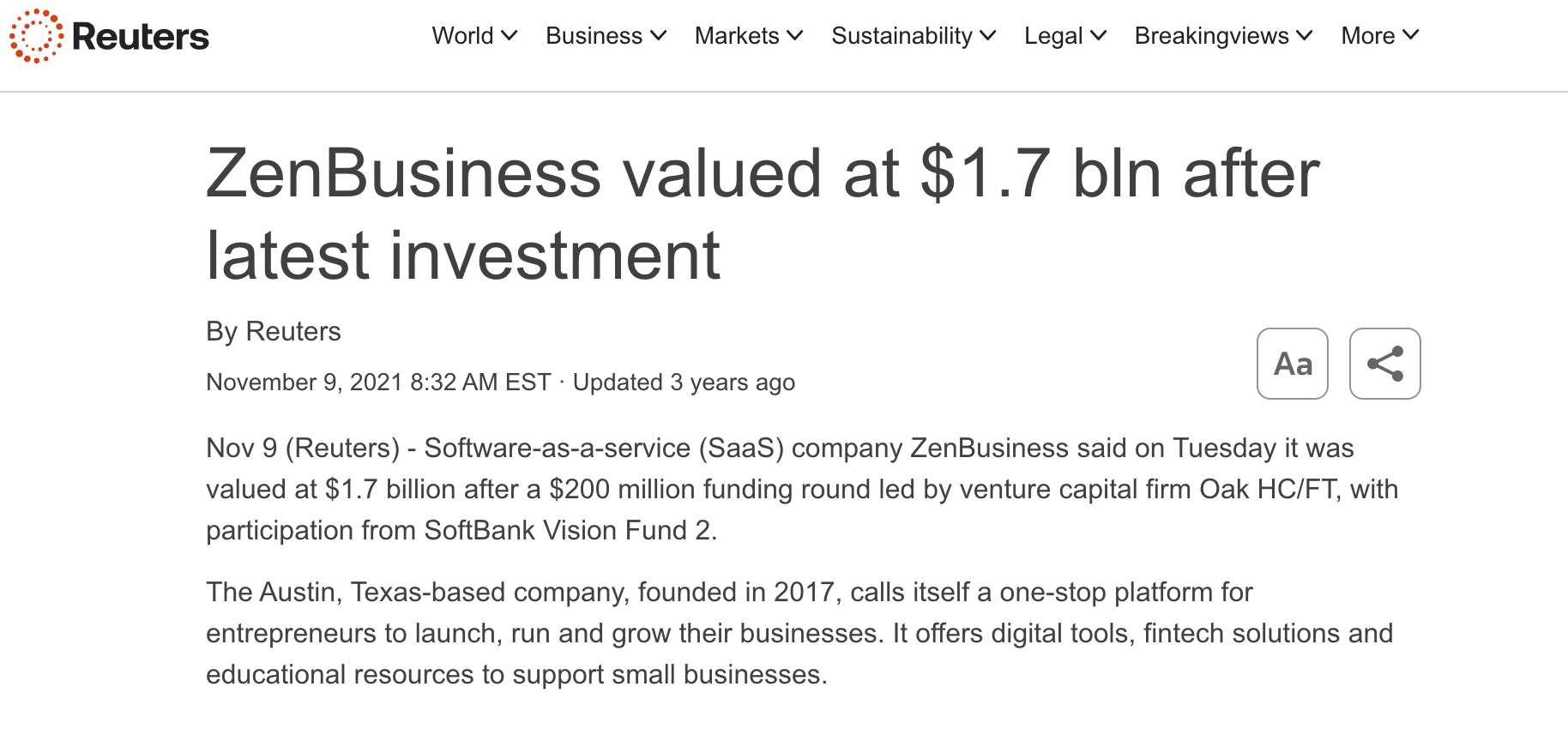Elevating brand and executive thought leadership for ZenBusiness: I helped establish ZenBusiness as the go-to platform for small businesses, driving brand awareness and credibility through strategic media relations. By securing top-tier coverage, I amplified the company’s presence and positioned its executives as thought leaders through interviews, speaking engagements, and bylined content. From developing impactful brand campaigns to earning industry accolades, I ensured ZenBusiness remained front and center in the conversation around entrepreneurship. Media coverage highlights below.